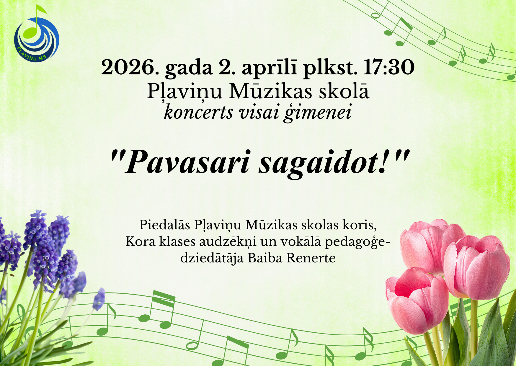 2. aprīlī mūsu mūzikas skolā izskanēja sirsnīgs un pavasarīgām noskaņām piepildīts kora un kora klases audzēkņu atklātais mācību koncerts “Pavasari sagaidot!”  Koncertā uzstājās skolas koris un dziedātāja – vokālā pedagoģe Baiba Renerte.